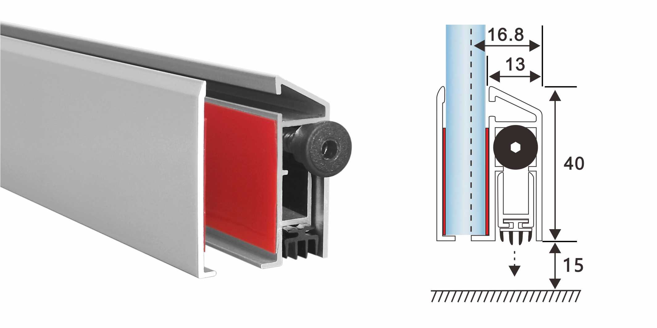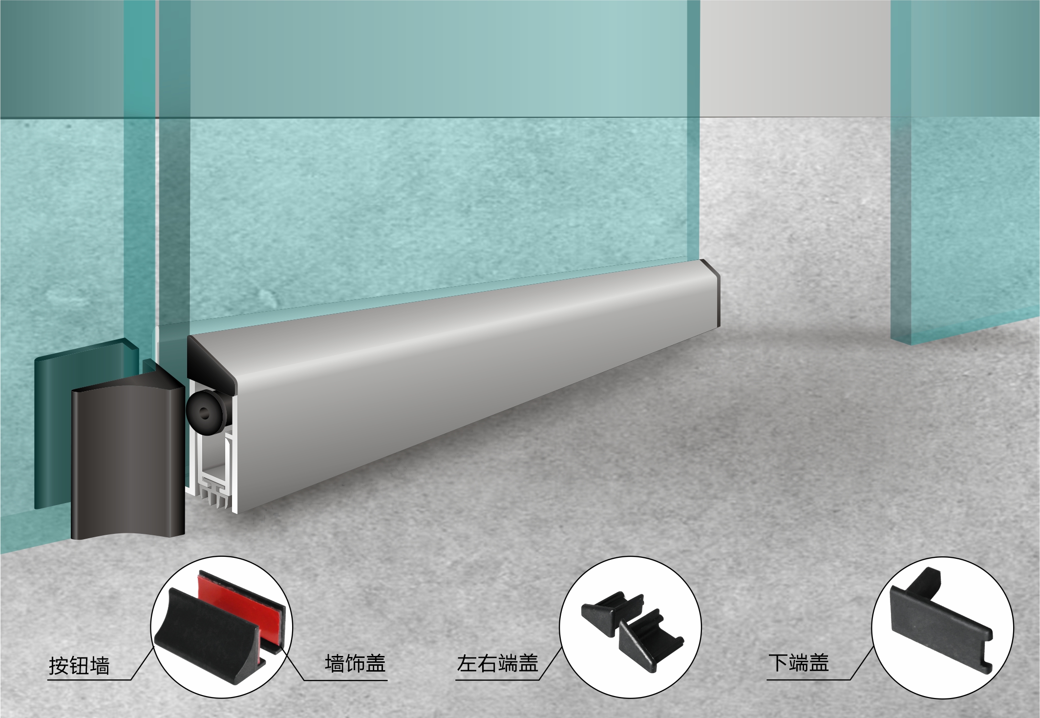 為平開純玻璃門,鋁合金窗框玻璃門,不銹鋼框玻璃門,木框玻璃門特別設(shè)計的門底自動升降式密封器。附件配套齊全,能適應(yīng)有門框或無門框的玻璃門。帶磨砂表面的正面和背面的鋁合金裝飾條,產(chǎn)品表面無螺絲,平整美觀。